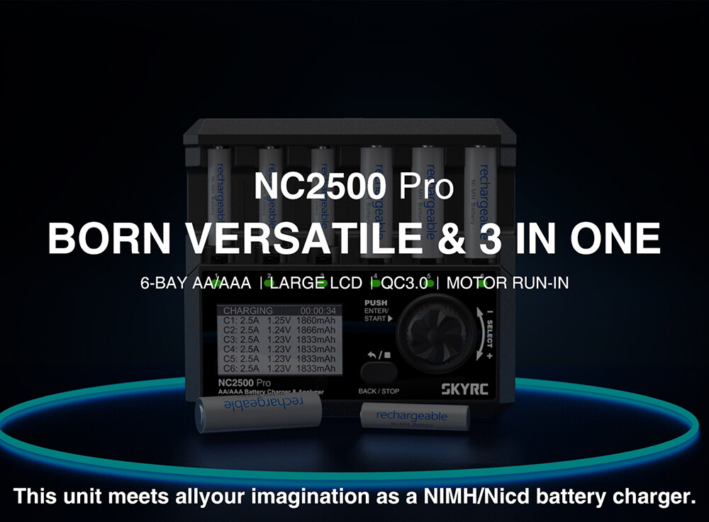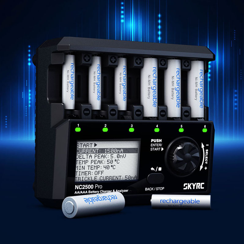 The SkyRC NC2500 Pro is a high-performance, 6-slot smart charger and analyzer specifically designed for AA and AAA NiMH/NiCd batteries. It is widely used by RC enthusiasts and power users for battery maintenance, optimization, and testing. SkyRC