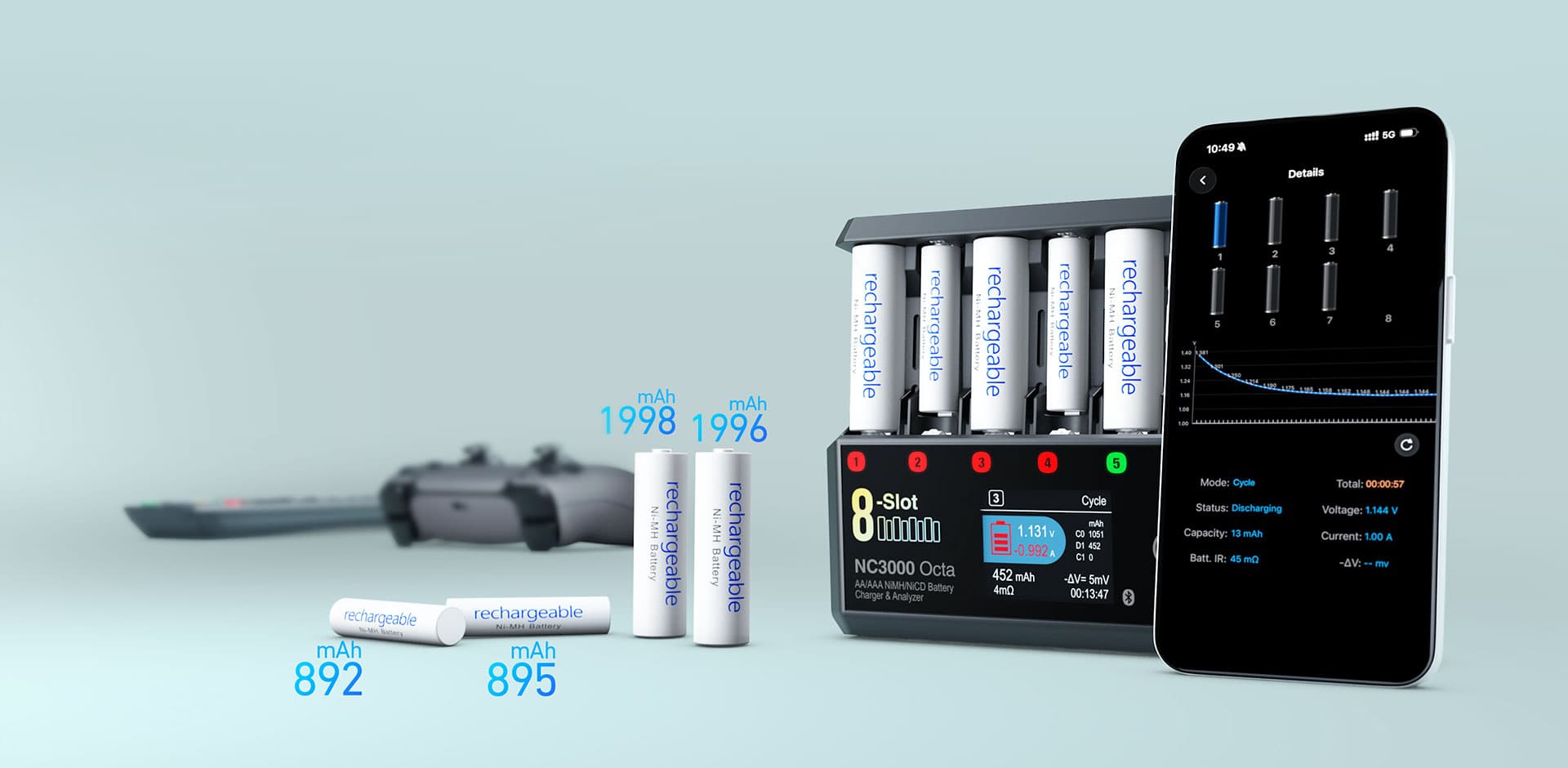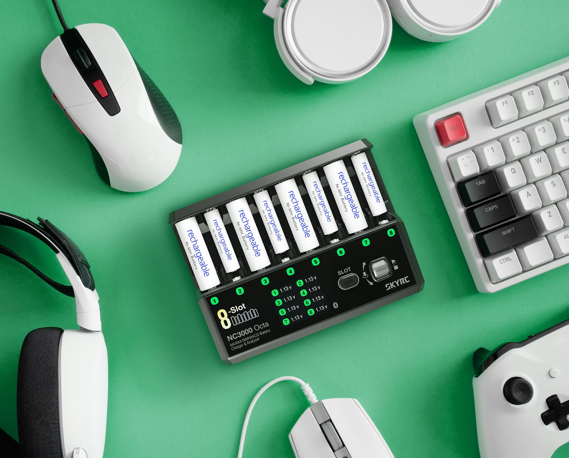 The SkyRC NC3000 Octa is a powerful, 8-slot smart charger and analyzer designed for AA/AAA NiMH and NiCd batteries, catering to serious users and RC hobbyists. It features multiple working modes and can be controlled via an app for detailed data analysis and performance tuning.
