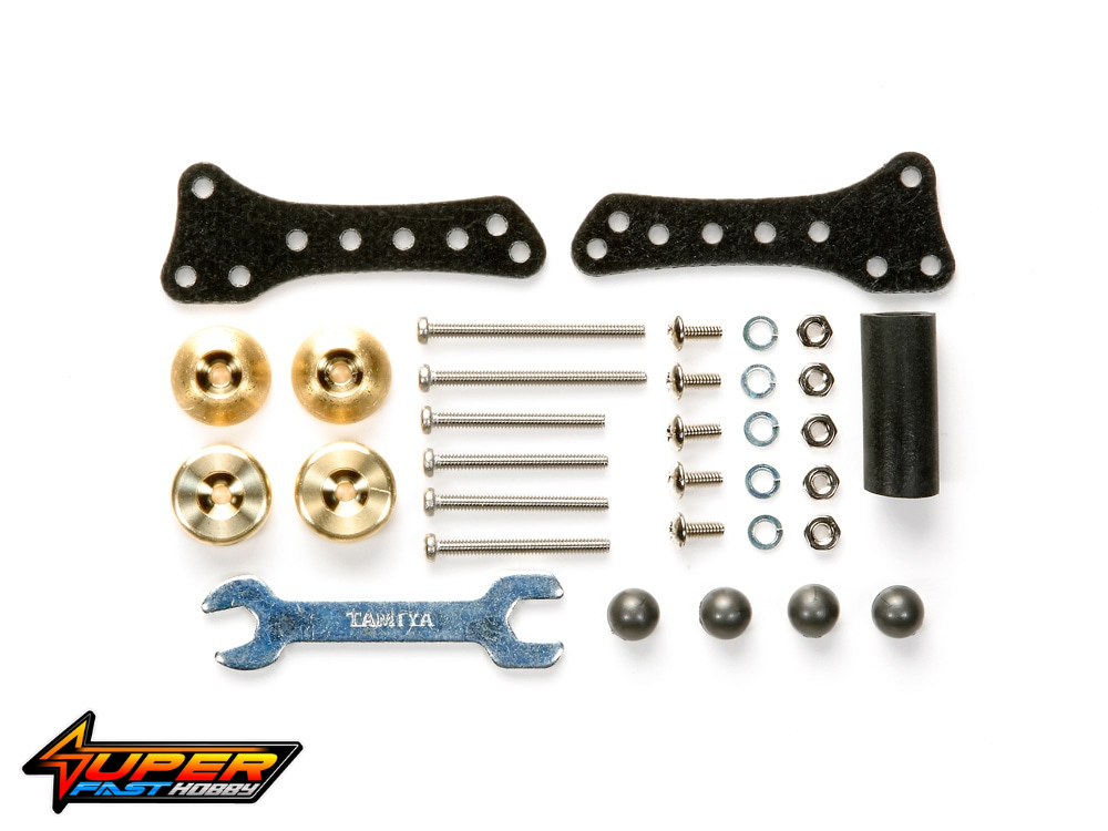 ★Boost your car’s stability with this set, which includes two FRP side plates and four mass dampers. ★Both bowl and cylinder shape mass dampers are included. ★Bowl weights weight 3.4g each, and cylinders 4.2g each.