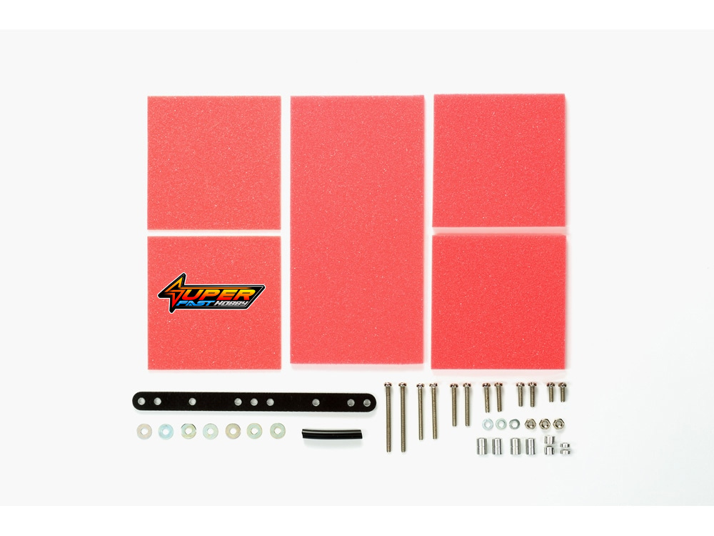 ★Adjust your Mini 4WD machine’s braking characteristics with this handy set! ★1mm thickness sponge can be used even on parts very low to the ground, such as the chassis underside. ★Three different thicknesses are included to give you a free hand in where and how you use them.