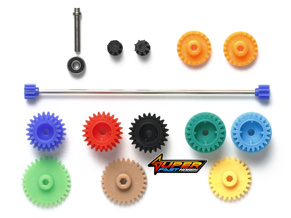 ★Take control of your chassis’ drivetrain with this set! ★Includes a complete set of gears compatible with the FM-A chassis, plus ball bearing, propeller shaft, and more. ★Can also be used with Super X and Super XX chassis cars.