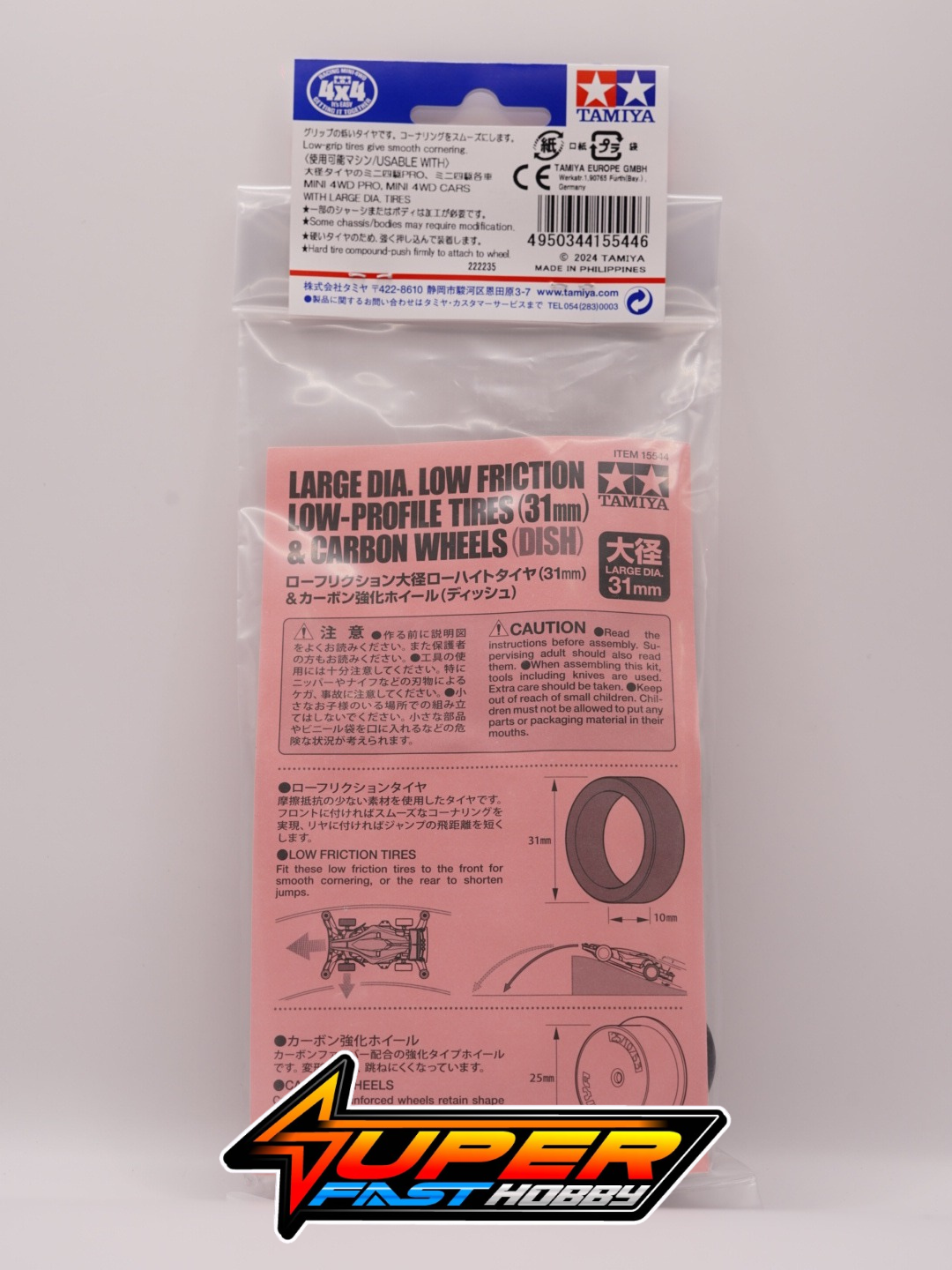 TAMIYA 15544 LARGE DIA. LOW FRICTION LOW-PROFILE TIRES (31mm) & CARBON WHEELS (DISH)