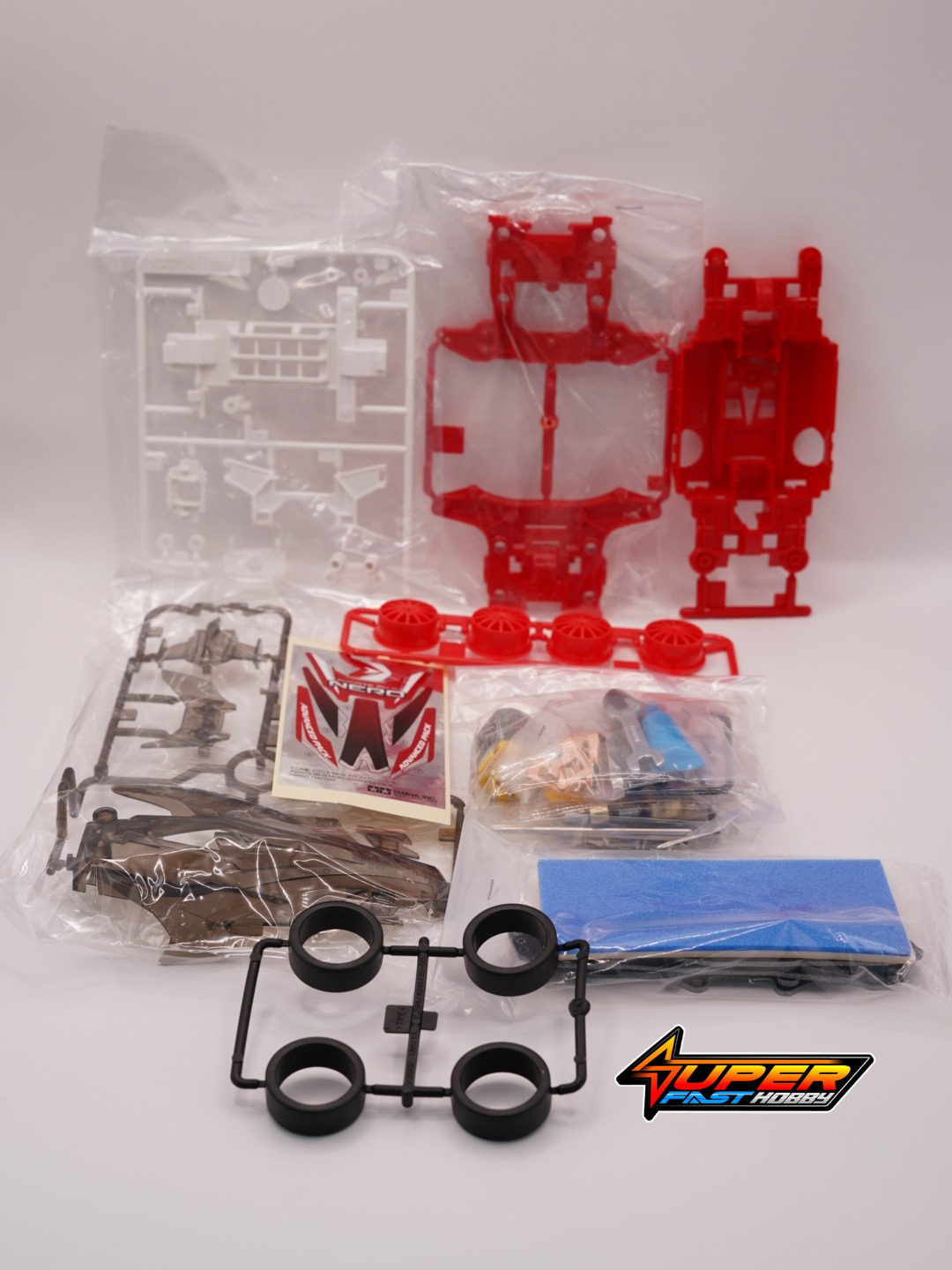 • The MS chassis is molded in red ABS plastic, and the A Parts are molded in white ABS plastic.