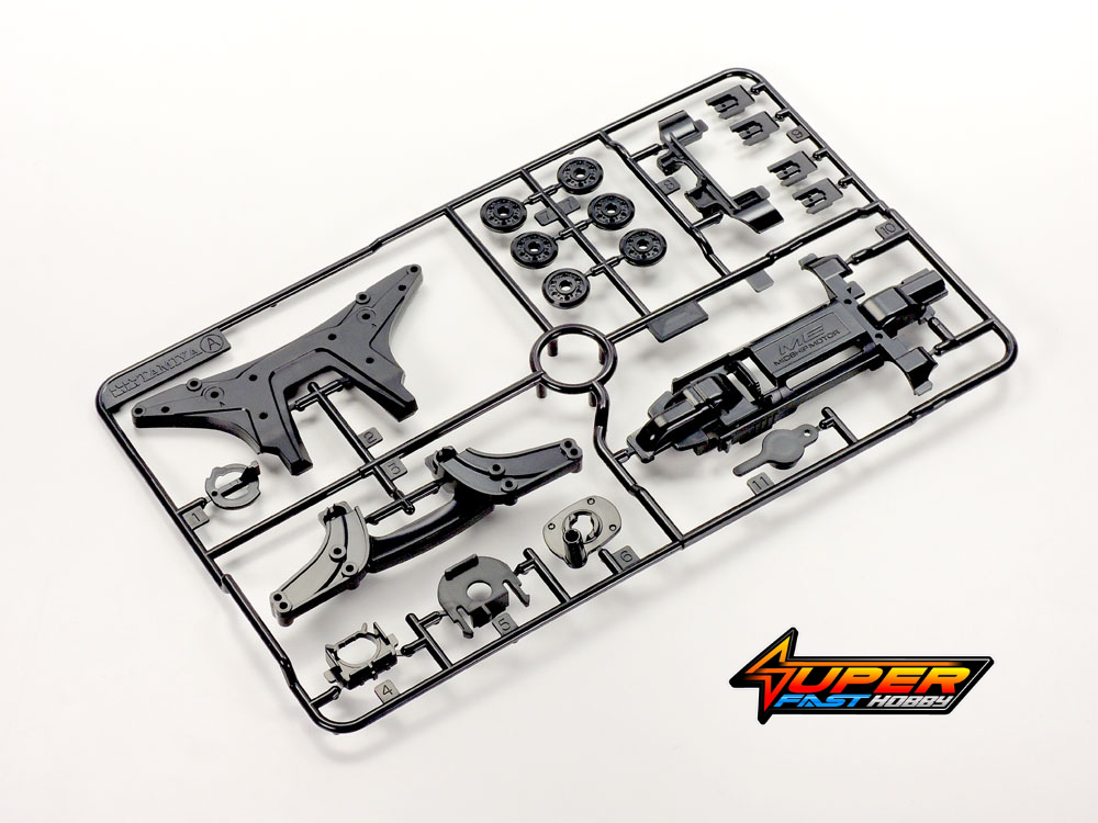 The ME is the third double shaft motor chassis after the MS and MA, and its initials are derived from its “Midship Evolution” concept. Lightweight, flexible and easy to get started with, its outstanding combination of rigidity and flex ensures a fluid drive, while the ease of assembly is very much in the vein of the MA chassis. The chassis and its A parts are molded in lightweight, tough ABS resin, and low-friction plastic bearings ensure efficient drive. Its bumpers are separately molded, and the chassis has a speedy 3.5:1 gear ratio.