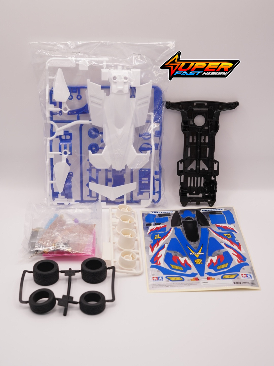 ★The Victory Magnum was a machine that was used by Go Seiba, one of the title characters from the Bakuso Kyodai Lets & Go!! manga featuring Mini 4WD. ★This kit features the Super-II chassis, which is molded with durable carbon-fiber reinforced nylon material. ★Tires with grooved tread pattern give this machine a realistic appearance.