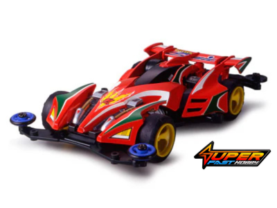 Racer Retsu Seiba of the TRF Victories is back for the climax of the “Let’s and Go!! MAX” series. His new machine, the Blitzer-Sonic evolved from the machine tried and tested at the World Mini 4WD Grand Prix, the Buster-Sonic. Go’s Blitzer-Sonic is capable of intense cornering, and sports an intrepid front nose and finely sculpted fenders for improved aerodynamics. The rear of the car adopts a three part, compound rear wing, ensuring ample down force at high speeds. For maximum stability during cornering, the front suspension has been painstakingly designed. The stylish body of the Blitzer-Sonic has been accurately recreated, complete with the Sonic traditional green and white markings.