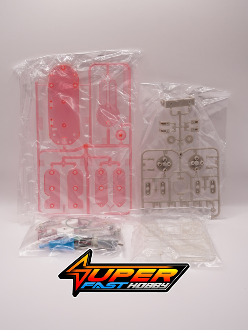 ★Length: 115mm ★Weight: 95g (without batteries) ★Body material: ABS resin ★Gearbox, motor also included. ★Includes guides to be attached on both sides to make the mechanical rabbit useable on Mini 4WD circuits. ★Screwdriver for assembly is provided. ★Requires one R04/AAA/UM4 battery (sold separately).