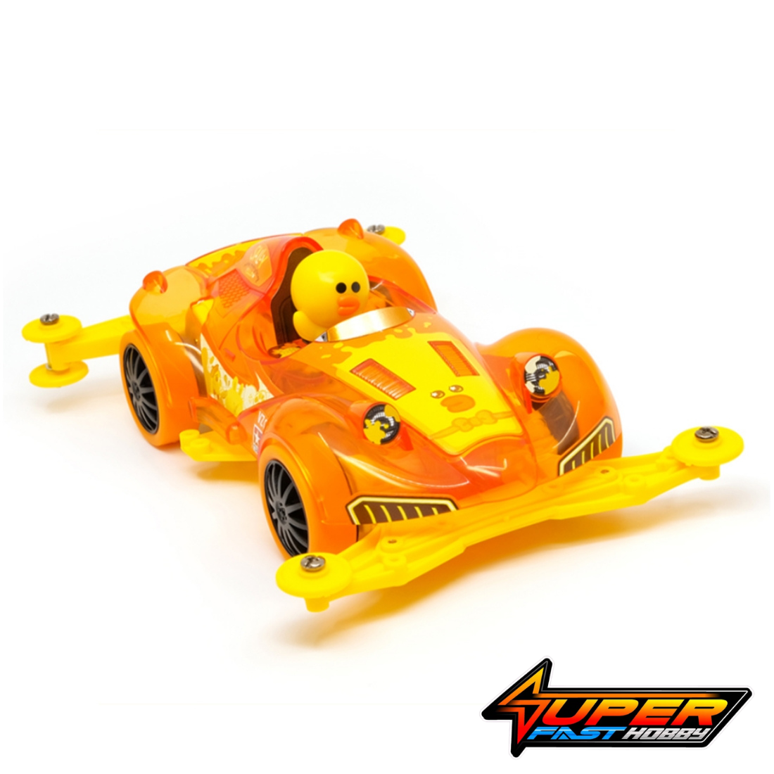 The Tamiya 92452 is the Line Friends Mini 4WD Sally Racer (VZ Chassis), a special edition model featuring the popular Line Friends character, Sally. The kit is a collaboration between Tamiya and Line Friends.