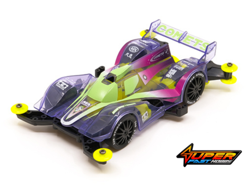 Chassis: The model uses the MA chassis, molded in clear purple ABS plastic.