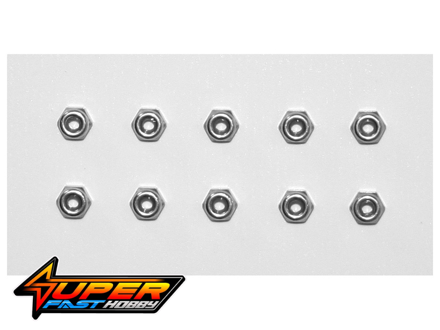 2mm nylon lock nuts X 10pcs. Can be used with any Mini 4WD machine.