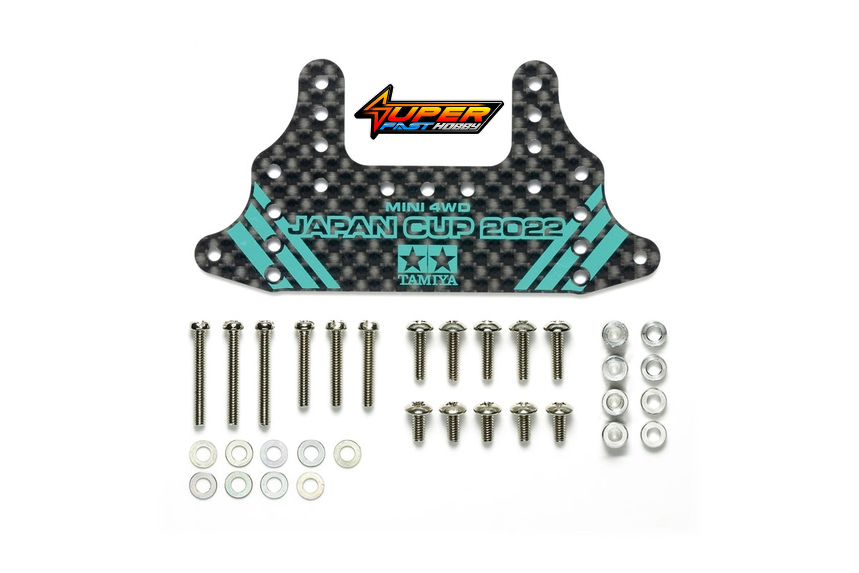 Design: It features a stylish carbon fiber surface pattern and blue-green printed Tamiya and Japan Cup 2022 logos.