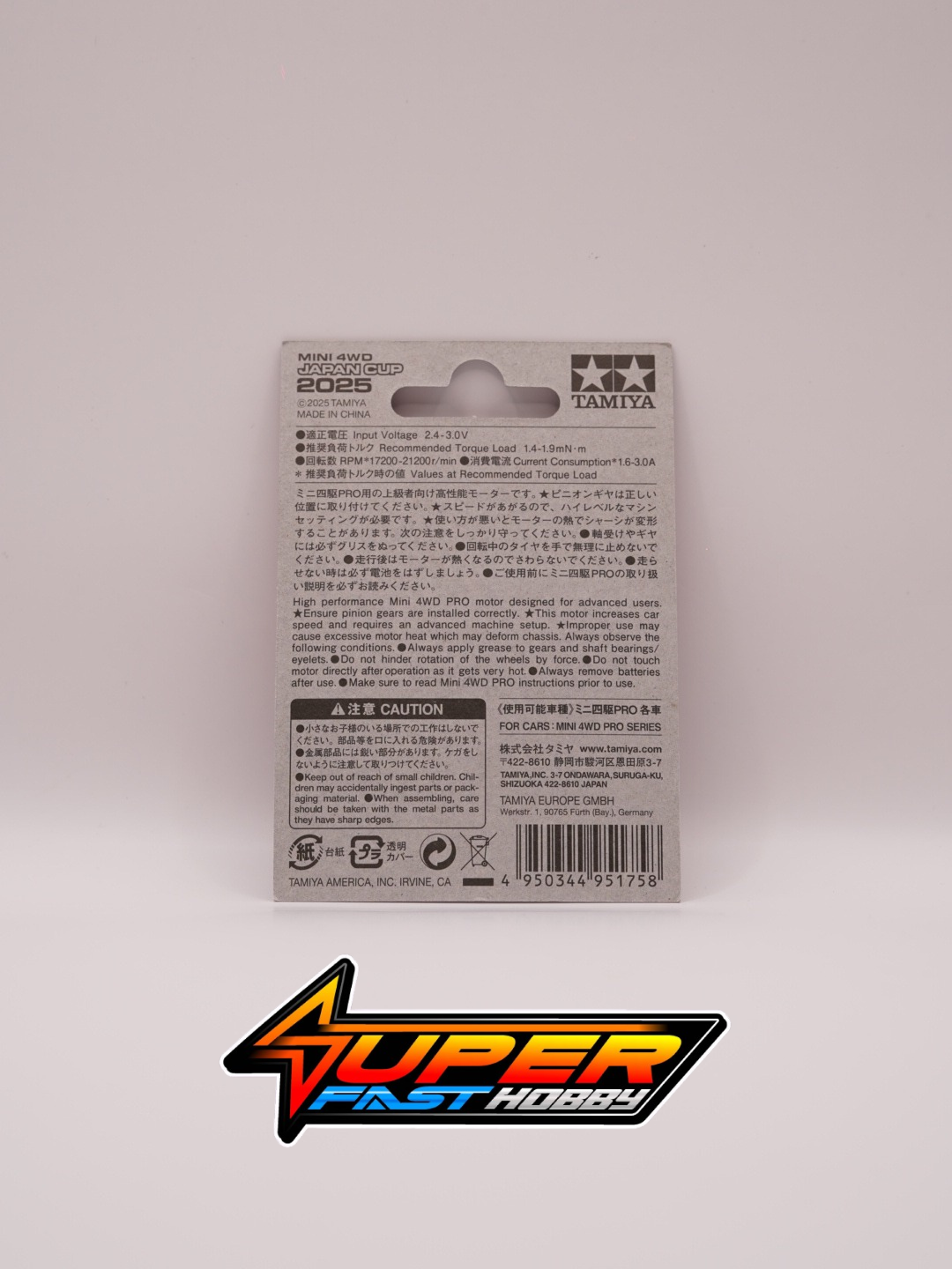 This limited-edition release of the double-shaft Hyper-Dash Motor PRO (Item 15375) commemorates Japan Cup 2025. It is a balanced, high-performance motor, equally at home on a variety of course types and a great tune-up option for advanced racers.