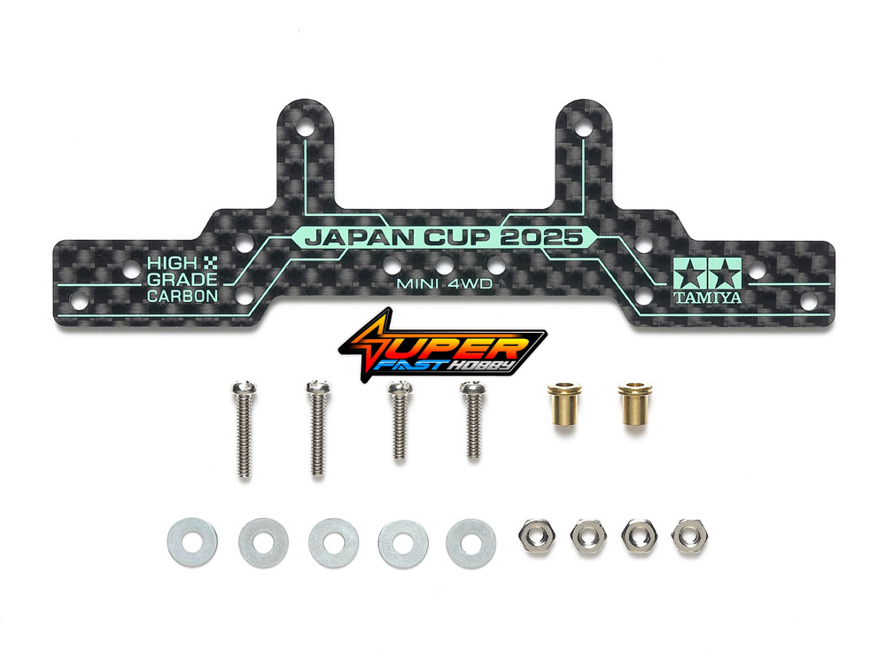 [A useful part for improving machine performance and settings] These lightweight and durable 1.5mm thick carbon fiber stays minimize deformation even under strong cornering forces, ensuring the most effective rollers. Their bold design, composed of straight lines and right angles, creates a powerful impression. The vibrant mint green J-CUP 2025 logo is printed on the race-like carbon fiber plate. Compatible with MA, MS, VZ, FM-A, AR, VS, Super II/X/XX, and TZ-X chassis.