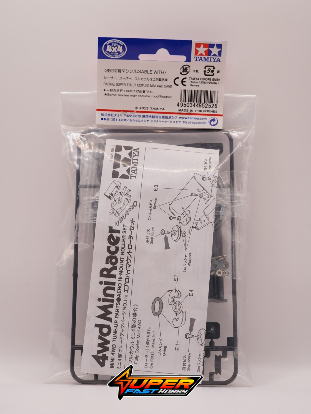 The Tamiya 95252 refers to the Aero Hi-Mount Roller Set (Black), a classic Grade-Up part for Mini 4WD racing.