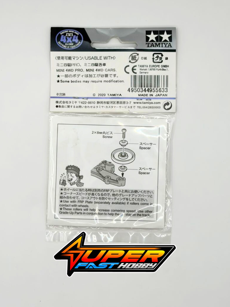 This is a lightweight 17mm aluminum ball-race rollers that are currently available to tune your Mini 4WD car. These rollers provide less weight and a slight boost in speed, as well as superior durability and silky-smooth rotation.