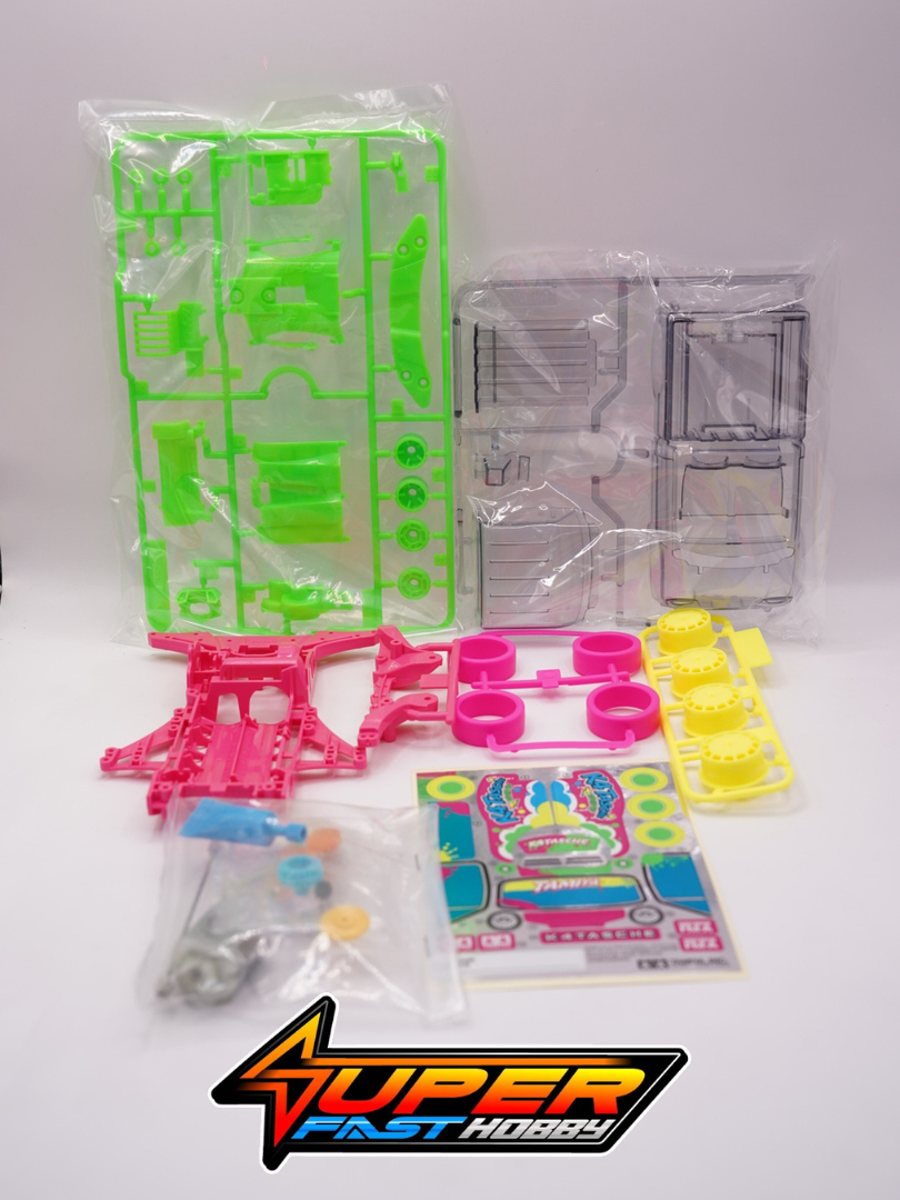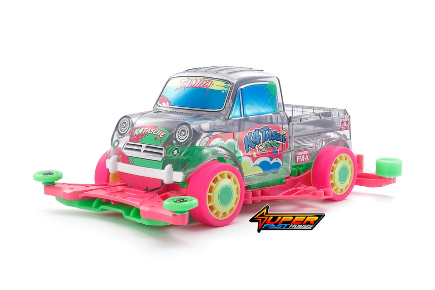 The Mini 4WD racing model K4Tasche itself captures a vintage customized small truck. The model gives a playful image and is sure to catch everyone’s attention at the track with its unique form.