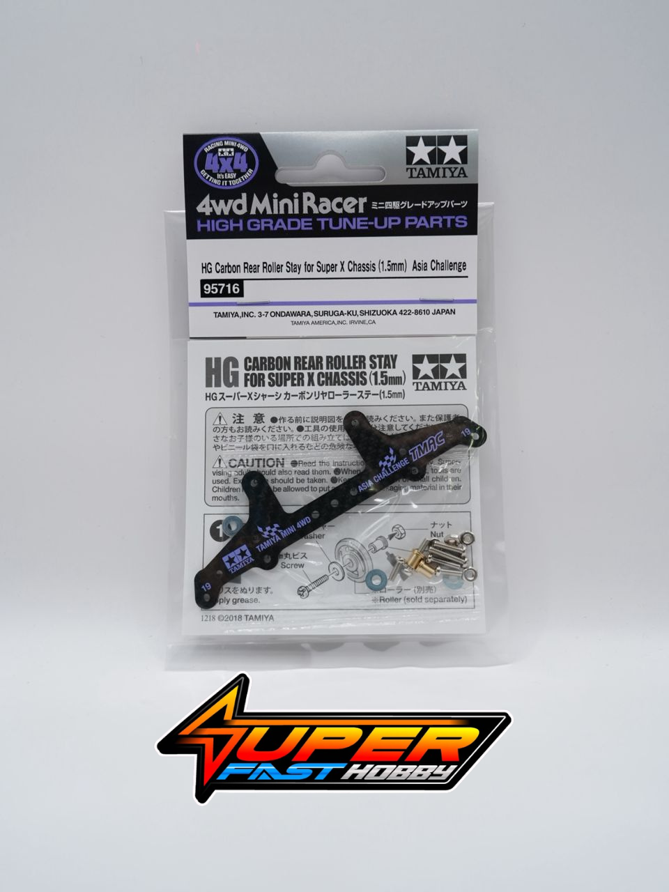 The Tamiya 95716 is the HG Carbon Rear Roller Stay (1.5mm) designed for the Super X Chassis. This high-performance grade-up part is a special edition released for the Tamiya Asia Challenge 2026 (TMAC). theplayground.com.sg